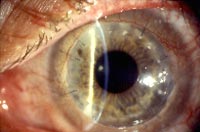 La déformation de la cornée greffée (astigmatisme) est très fréquente, parfois réversible à l'ablation des fils ou par une opération.