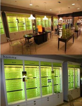 Des montures theâtralisées grâce a une segmentation claire par cible hommes, femmes, enfants, solaires et déclinées ensuite soit par marques créateurs soit par motivation d'achat (actif, confort, tendance).