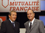 Photo: "Je souhaite que l'aide à  la complémentaire soit désormais versée à  tous les Français dont les revenus ne dépassent que de 20% le plafond de la CMU (couverture maladie universelle)", a déclaré Jaques Chirac dans un discours prononcé à  l'ouverture du 38e Congrès de la Mutualité française (avec Jean Claude Davant, président de la Mutualité Française).