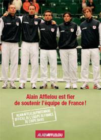 Après le sponsoring d’Amélie Mauresmo et du tournoi de Roland-Garros, c’est au tour de l’Equipe de France de Coupe Davis d’être soutenue par Alain Afflelou.