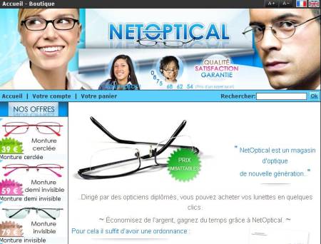 NetOptical.fr propose en effet la vente de lunettes accompagnées de verres correcteurs avec plusieurs options : verres amincis, verres qui foncent au soleil, antireflet... avec un premier prix à 39 €uros comprenant 1 monture + 2 verres en organiques durci + 1 étui.
