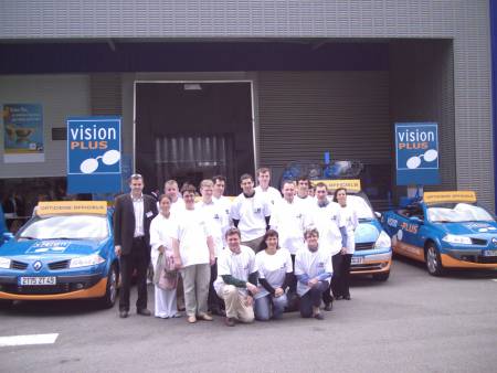Quelques jours avant le coup d'envoi du Tour de France (le 7 juillet à Londres), les 4 véhicules Vision Plus, avec les 5 étudiant en optique, sont venus fêter l'événement avec l'ensemble du personnel et quelques opticiens de la région Ile de France, fiers d'être "opticiens officiels" de la grande boucle.